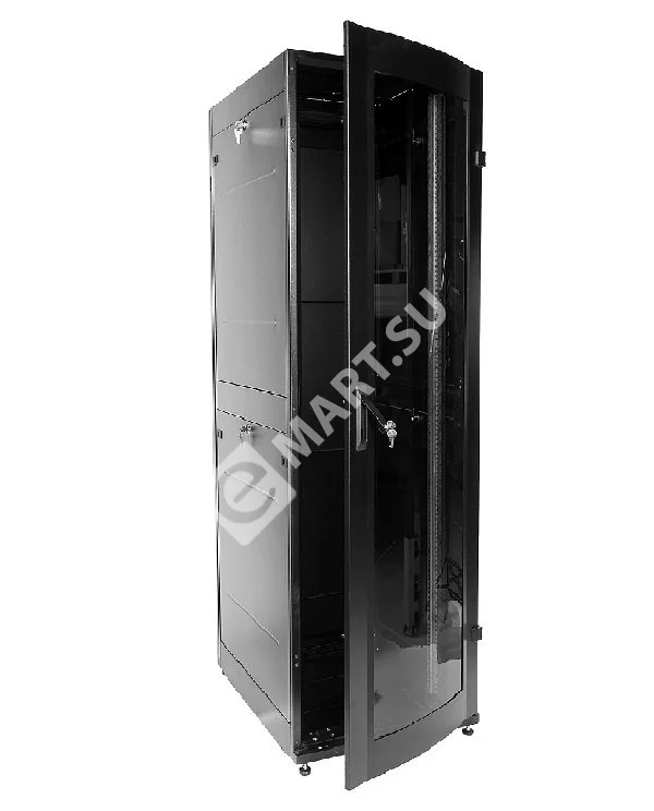 Шкаф телекоммуникационный напольный ПРОФ универсальный 42U (600 800) дверь стекло, чёрный, в сборе