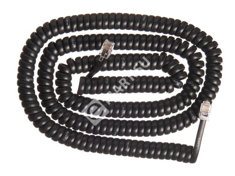 7,5 метра / черный. Из 4х жильного телефонного кабеля Витой телефонный кабель обжатый на концах коннекторами для телефонных трубок (4p4c). Предназначен для соединения телефонного аппарата с трубкой.
