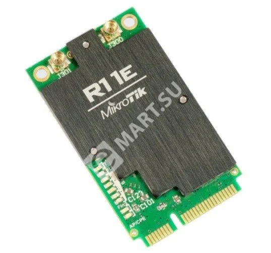 Mikrotik R11E-2HND - беспроводной модуль стандарта 802.11 b/g/n MIMO 2x2 для работы на частоте 2ГГц с мощностью 800 милливатт с разъемами uFL для подключения антенн и слотом miniPCI-e для установки в RouterBOARD.